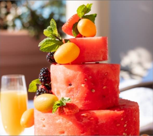 A cabana waiting after lunch overlooking the Coliseum pool – a celebration of sunshine and the endless view.
